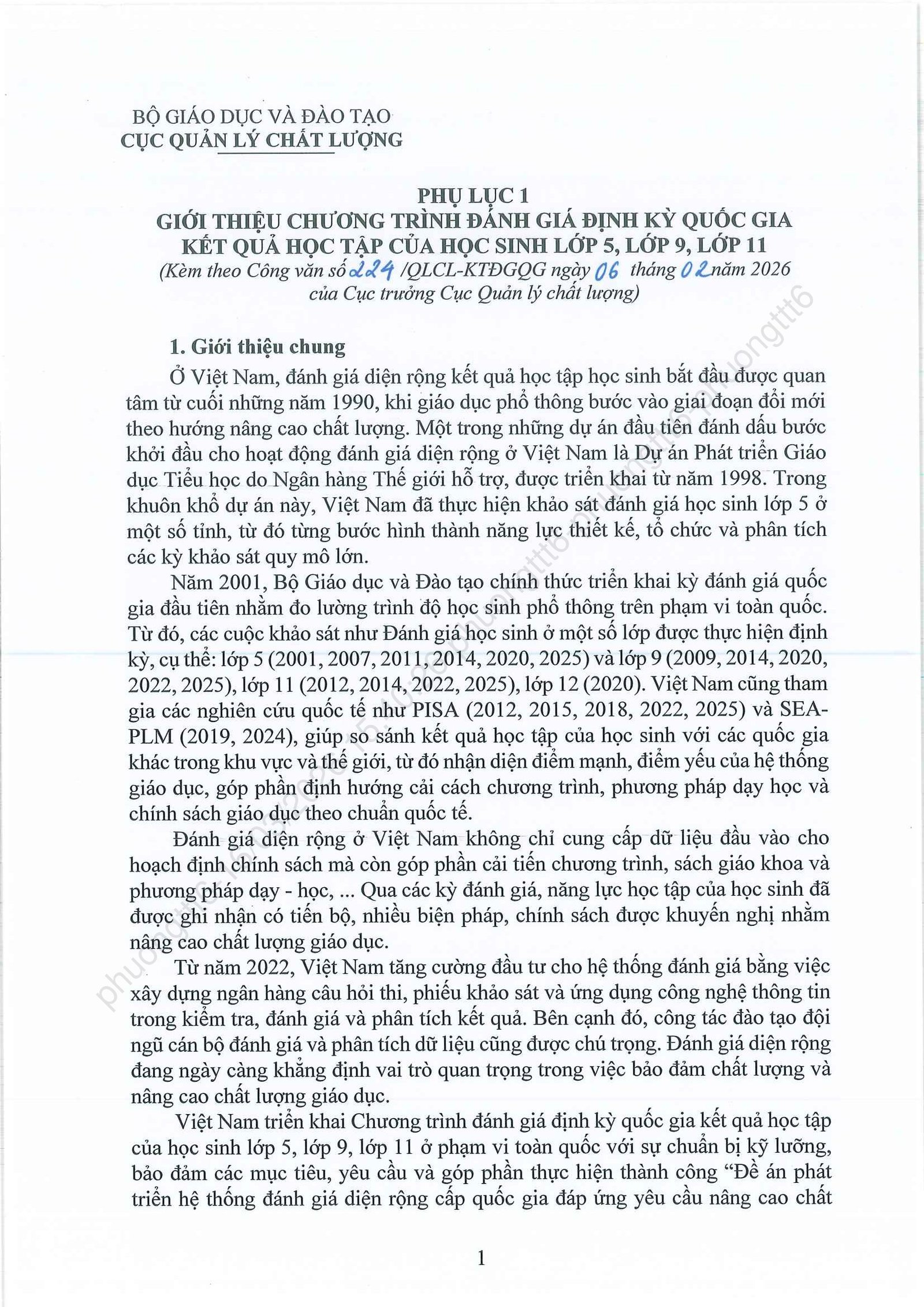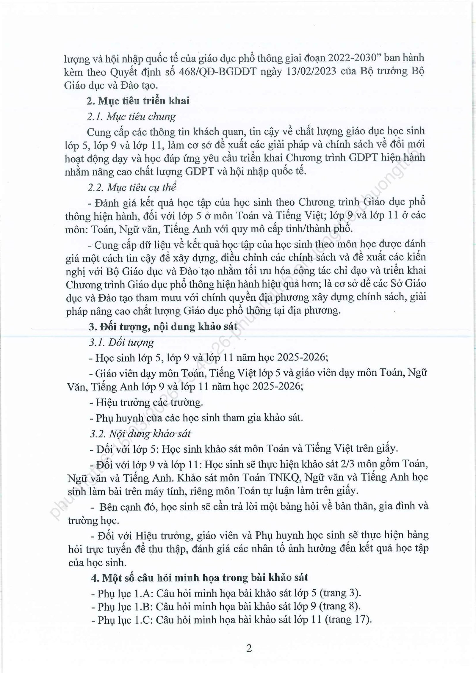V/V TRIỂN KHAI KHẢO SÁT CHÍNH THỨC ĐÁNH GIÁ ĐỊNH KỲ LỚP 5, LỚP 9, LỚP 11