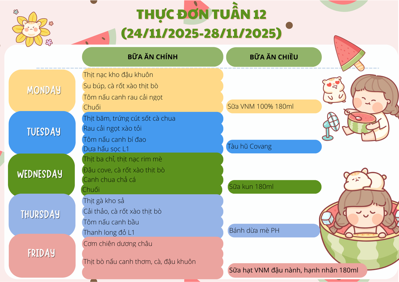 THỰC ĐƠN TUẦN 12 (24/11/2025 – 28/11/2025)