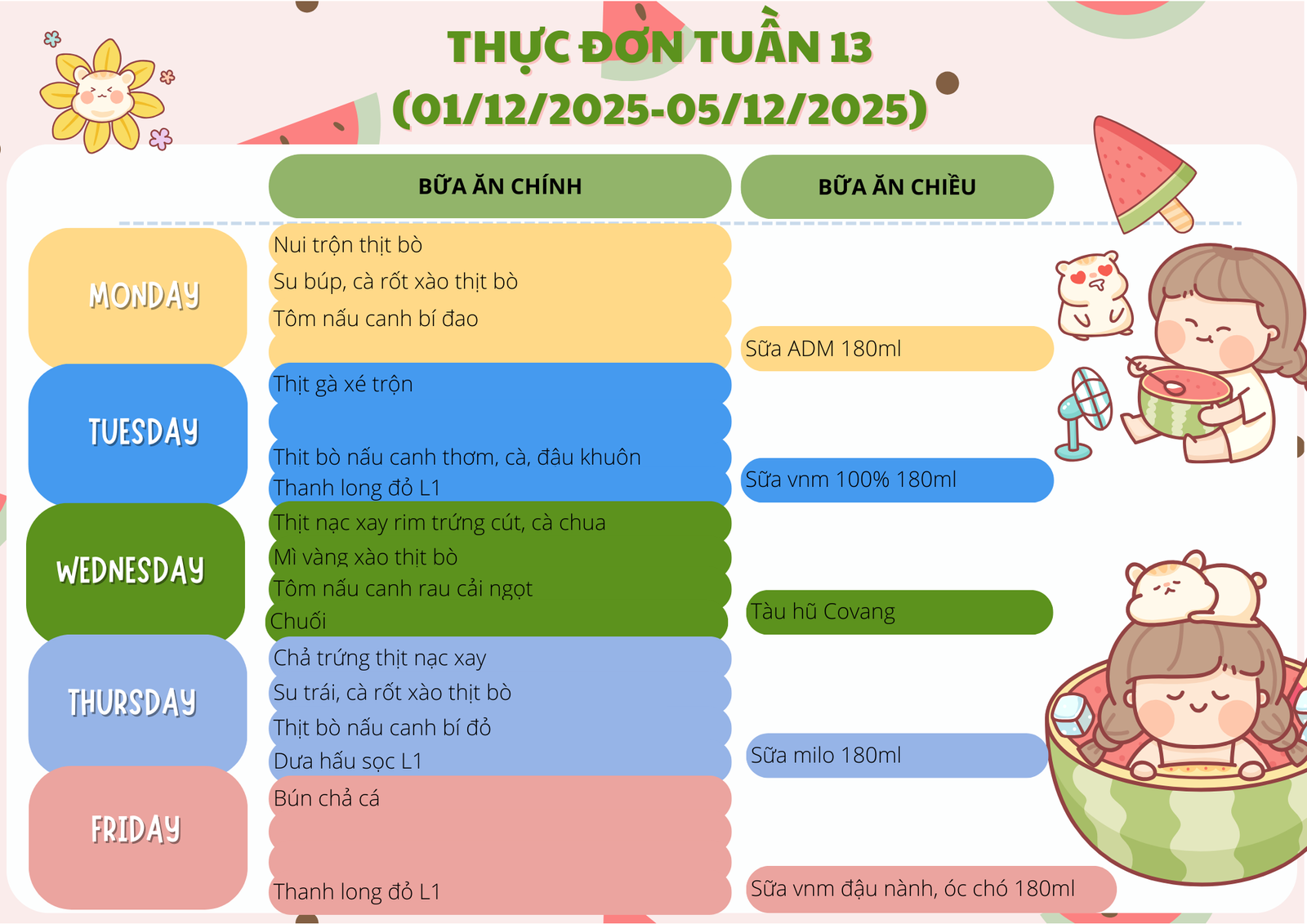 THỰC ĐƠN TUẦN 13 (01/12/2025 – 05/12/2025)
