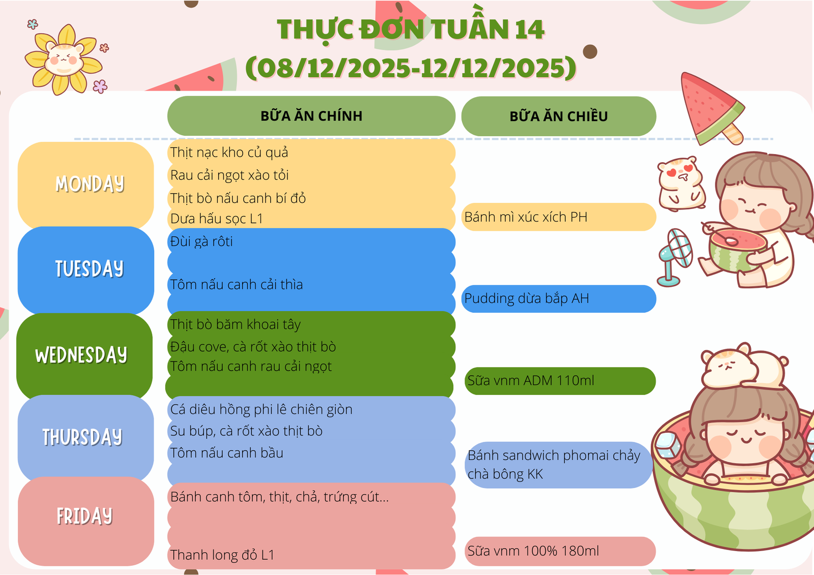 THỰC ĐƠN TUẦN 14 (08/12/2025 – 12/12/2025)