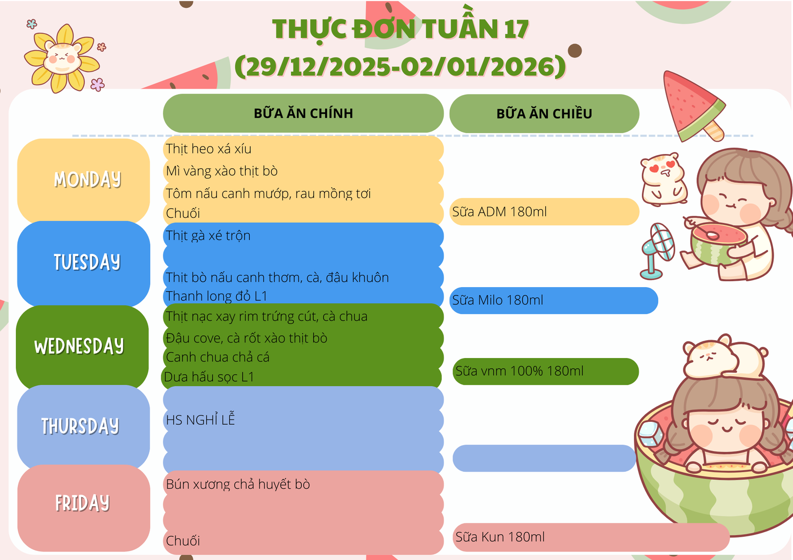 THỰC ĐƠN TUẦN 17 (29/12/2025 – 02/01/2026)