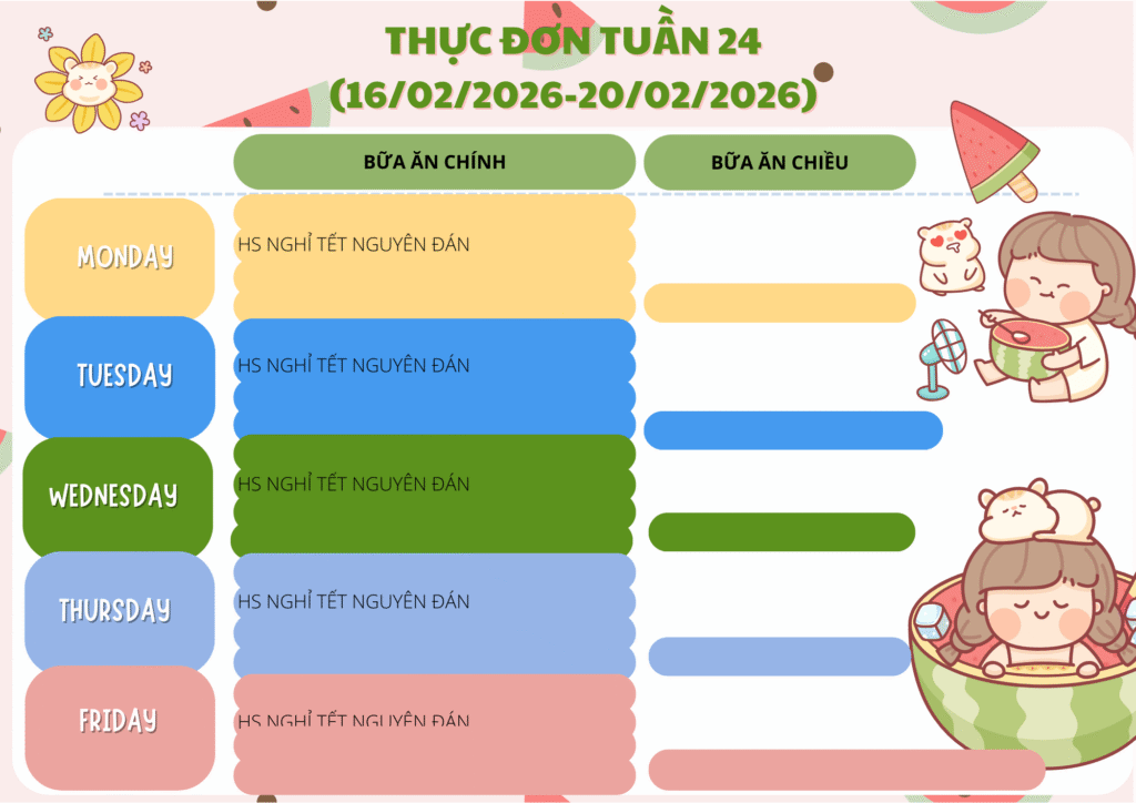 THỰC ĐƠN TUẦN 24 (16/02/2026 – 20/02/2026)