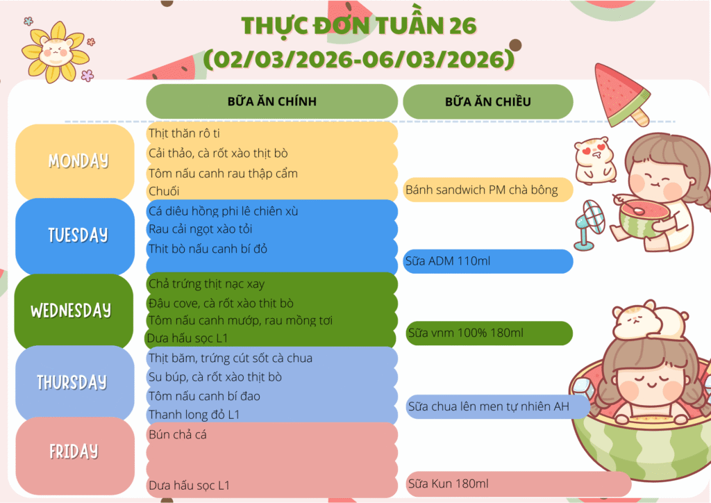 THỰC ĐƠN TUẦN 26 (02/03/2026 – 26/03/2026)