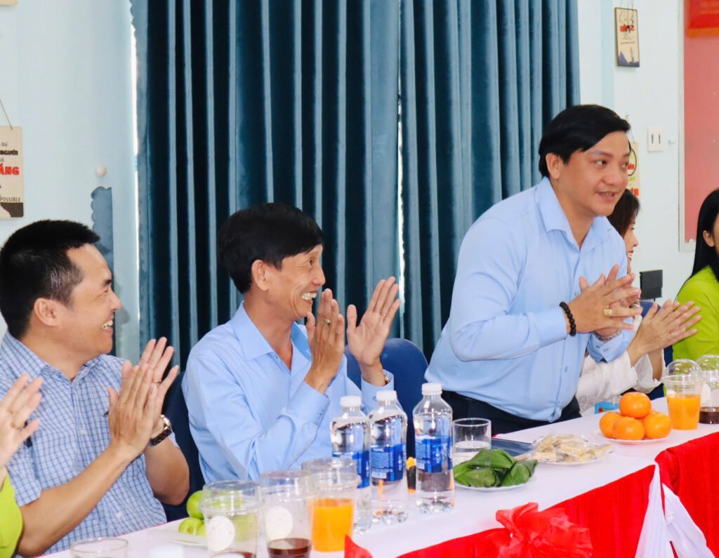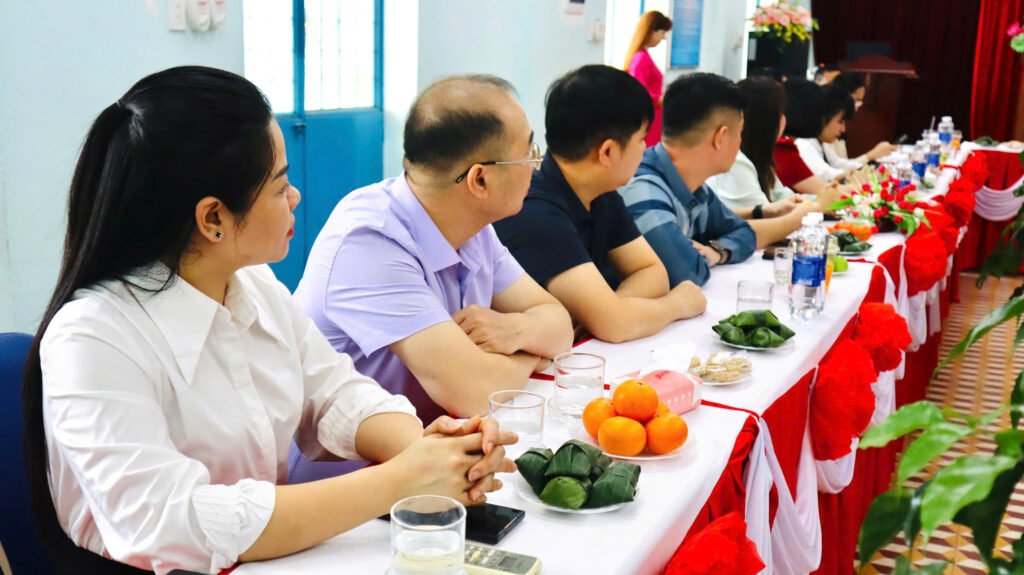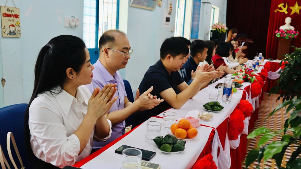 🌸 Kết thúc buổi làm việc, cô giáo Nguyễn Thị Thanh Hương – Bí thư chi bộ – Hiệu trưởng nhà trường, cô Bùi Thị Hoài Thanh, cô Trần Thị Thùy Phương – Phó hiệu trưởng nhà trường có món quà và bó hoa tươi thắm xin gửi tặng đoàn.