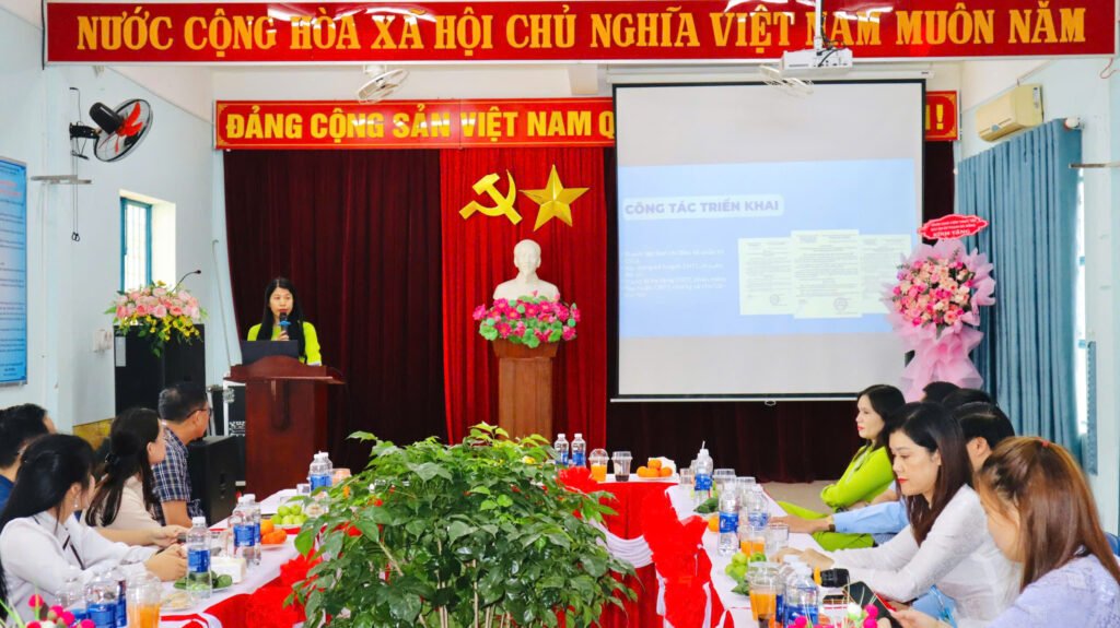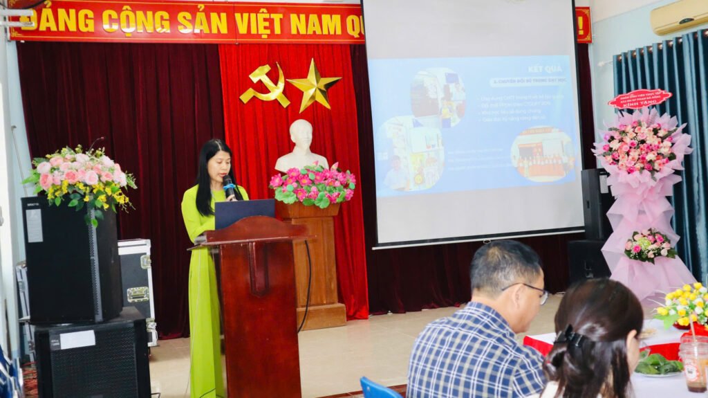 🌸 Cô Giáo Trần Thị Thuỳ Phương – Phó HT nhà trường trình bày Báo cáo công tác chuyển đổi số trong nhà trường.