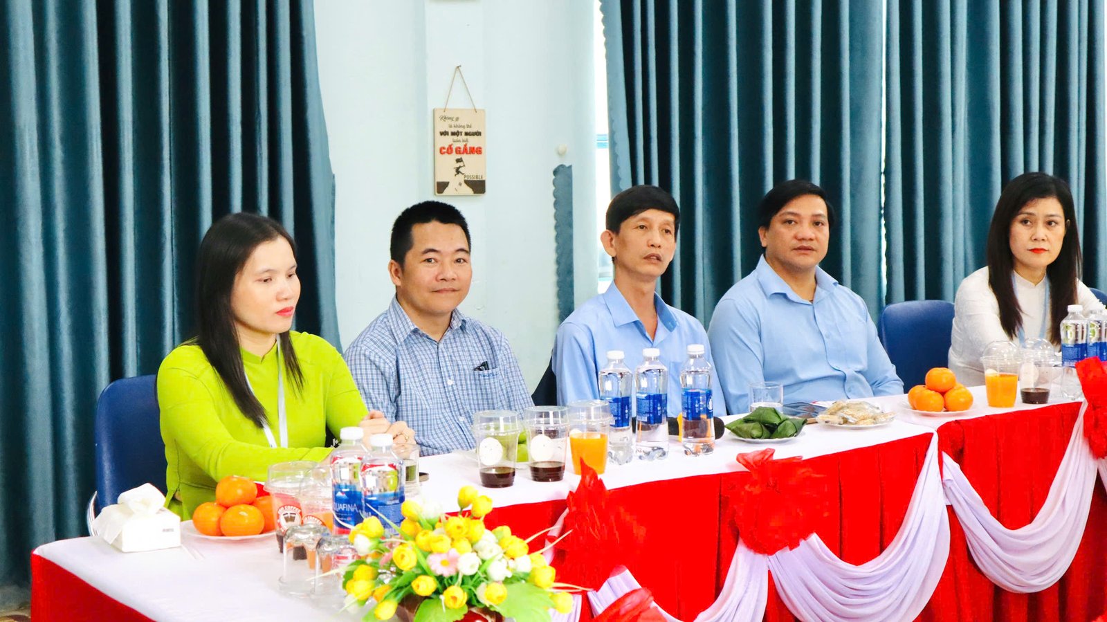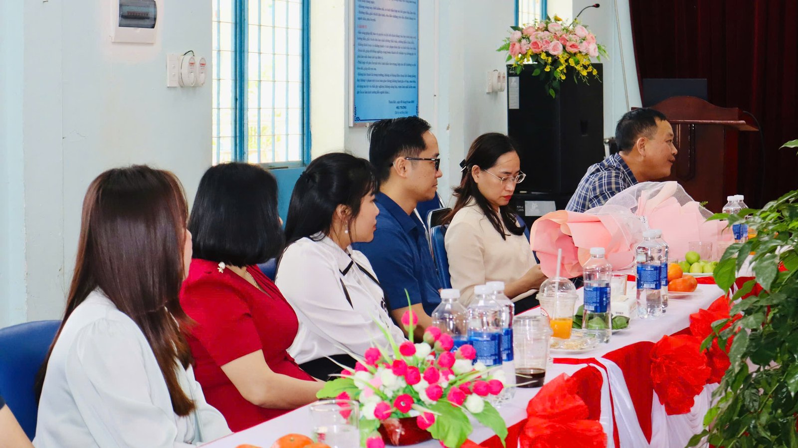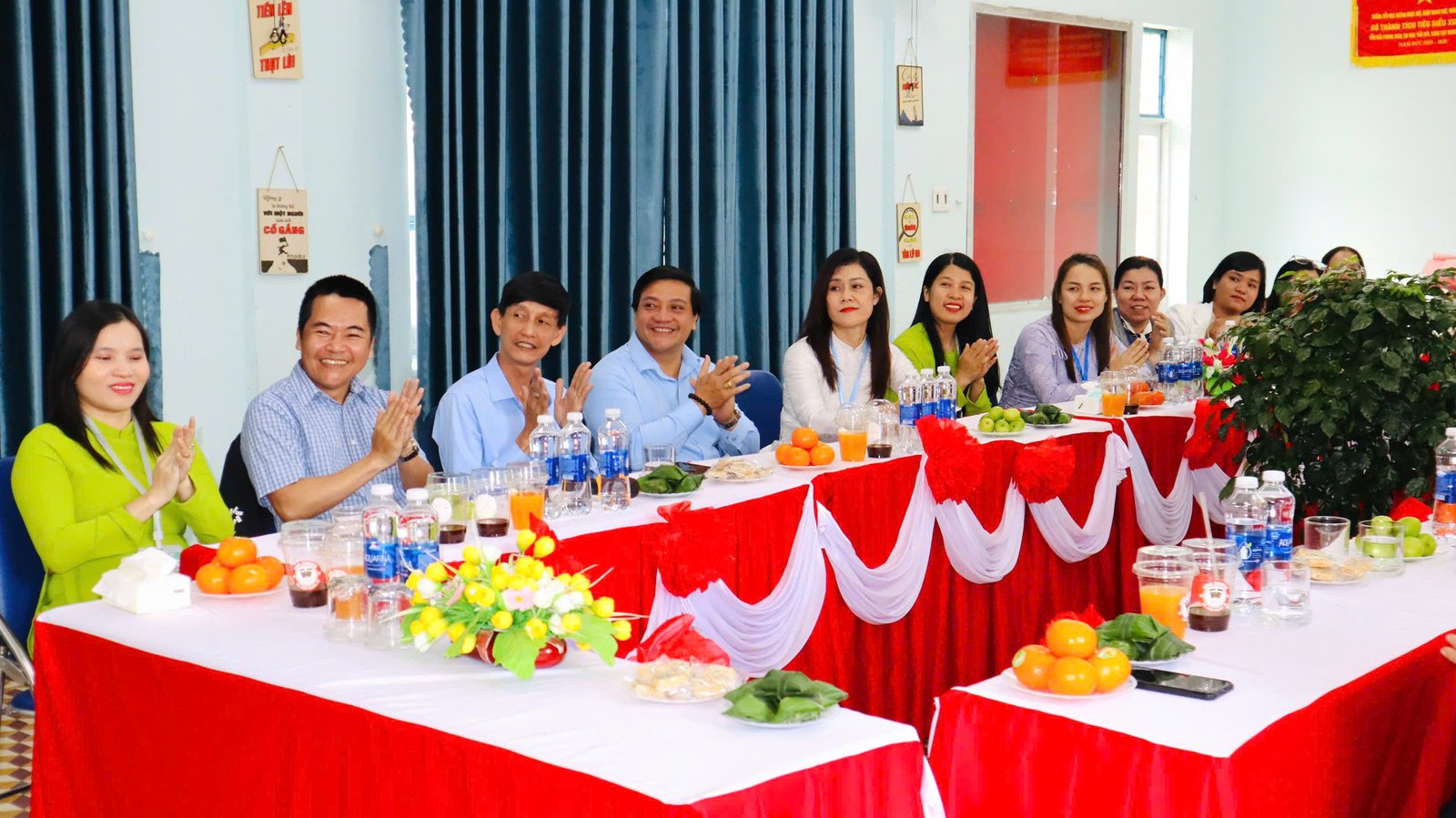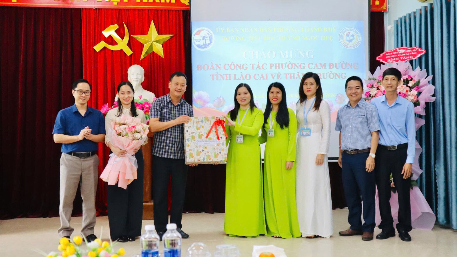🌸 Kết thúc buổi làm việc, cô giáo Nguyễn Thị Thanh Hương – Bí thư chi bộ – Hiệu trưởng nhà trường, cô Bùi Thị Hoài Thanh, cô Trần Thị Thùy Phương – Phó hiệu trưởng nhà trường có món quà và bó hoa tươi thắm xin gửi tặng đoàn.