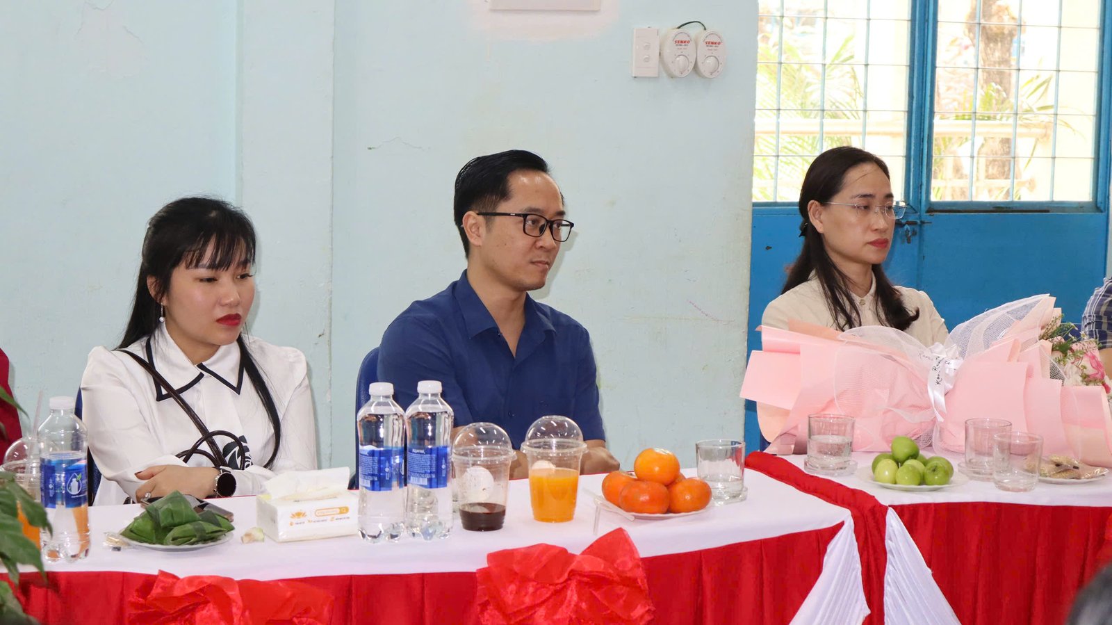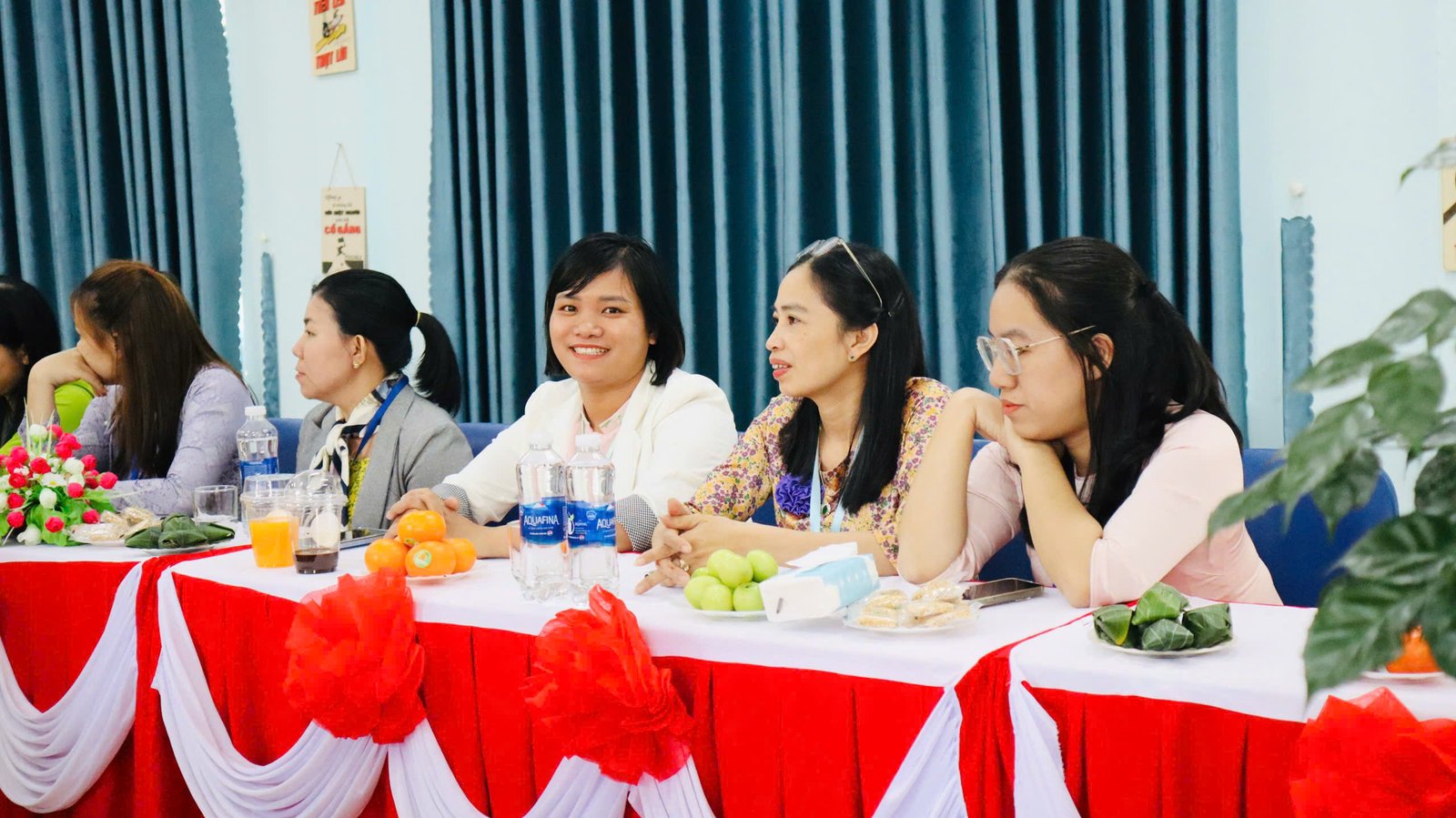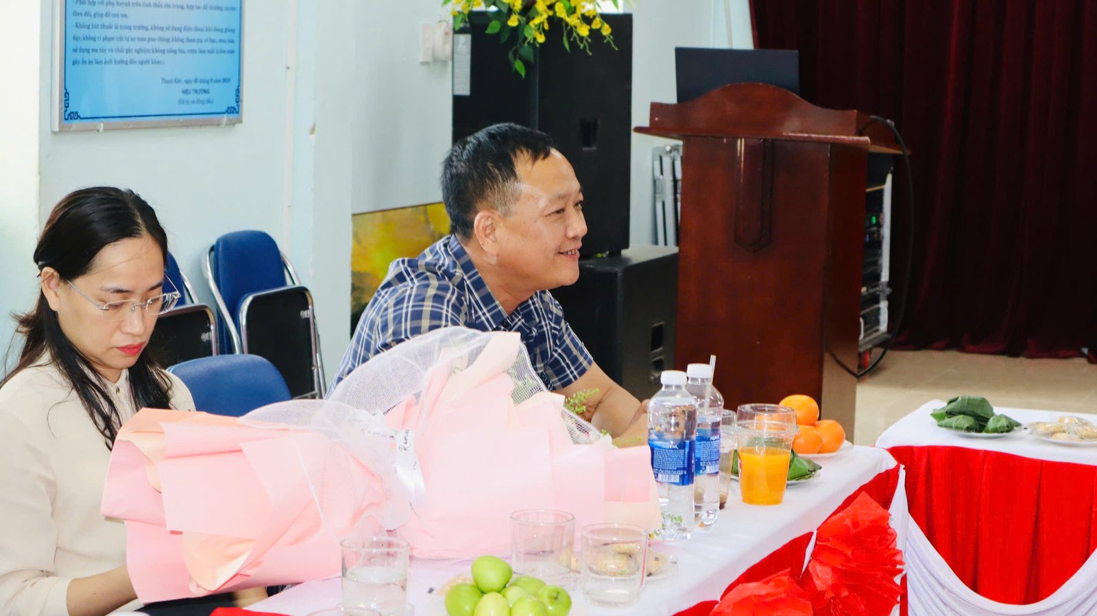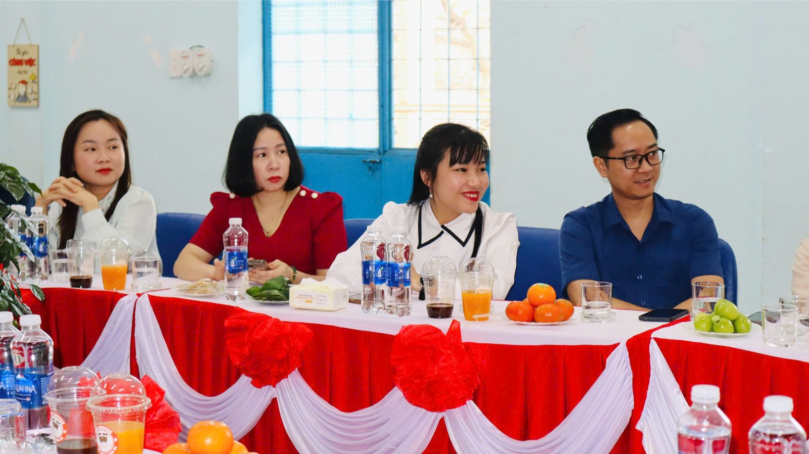 🌸 Kết thúc buổi làm việc, cô giáo Nguyễn Thị Thanh Hương – Bí thư chi bộ – Hiệu trưởng nhà trường, cô Bùi Thị Hoài Thanh, cô Trần Thị Thùy Phương – Phó hiệu trưởng nhà trường có món quà và bó hoa tươi thắm xin gửi tặng đoàn.