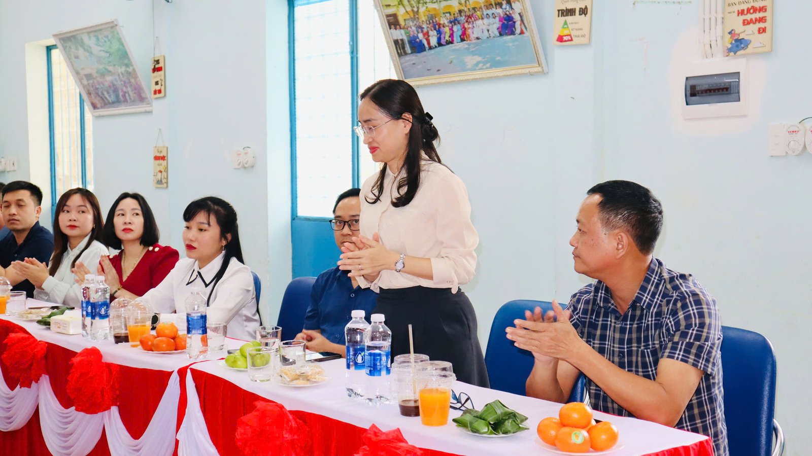 🌸 Mở đầu buổi làm việc, cô giáo Nguyễn Thị Thanh Hương – Bí thư chi bộ – Hiệu trưởng nhà trường cũng có đôi lời phát biểu chào mừng.