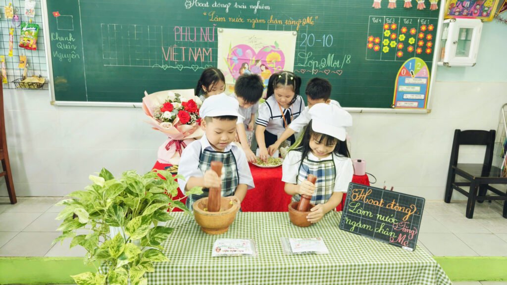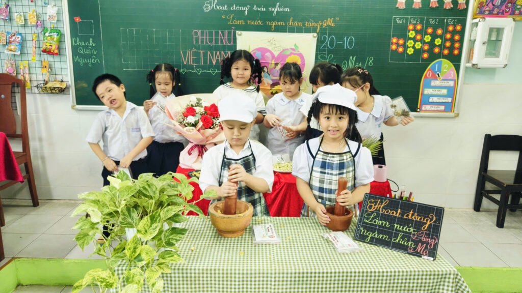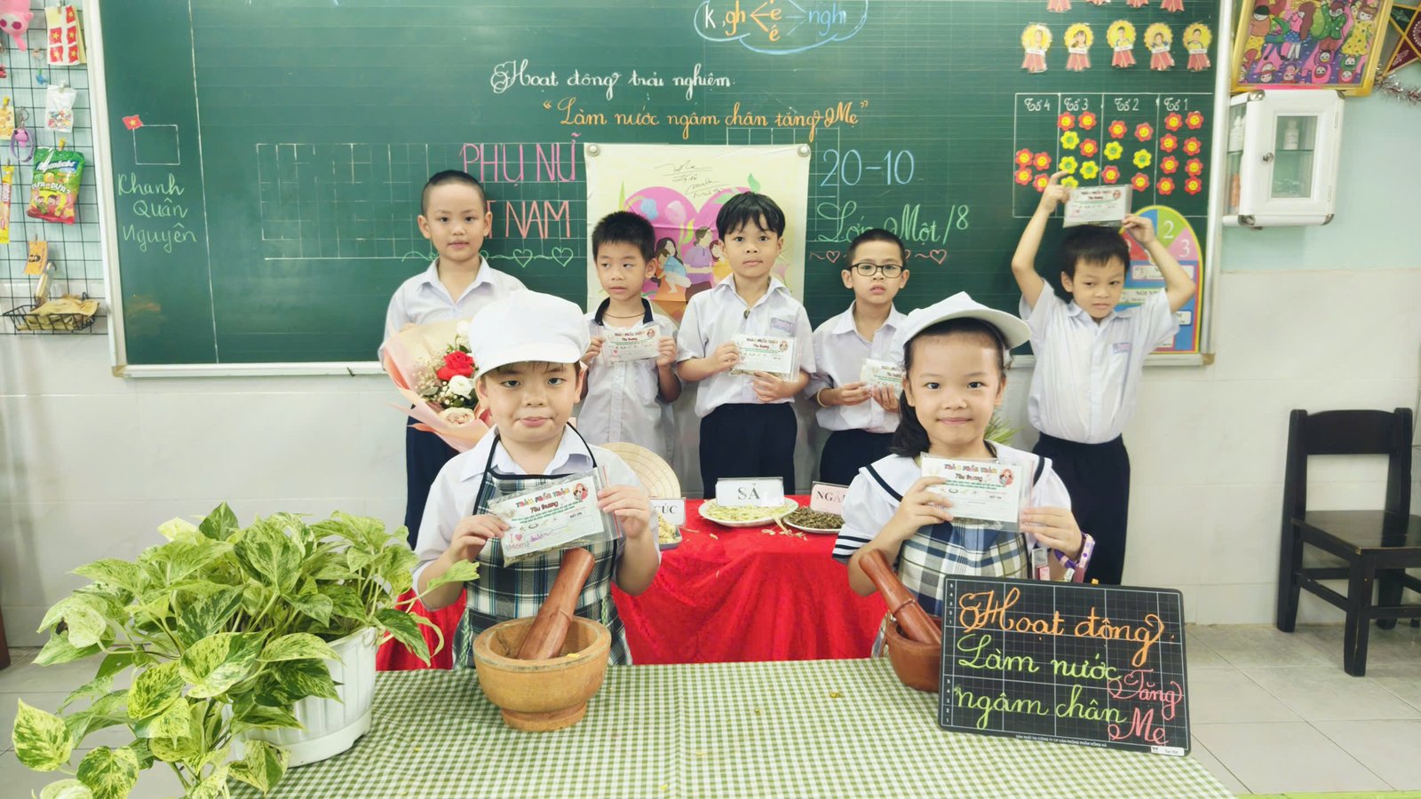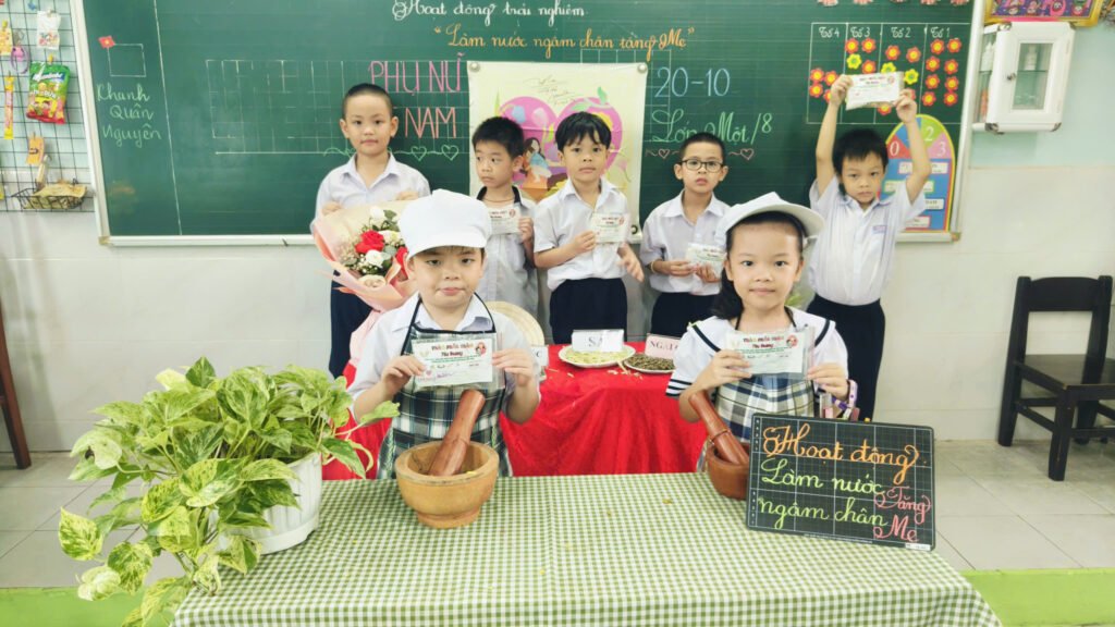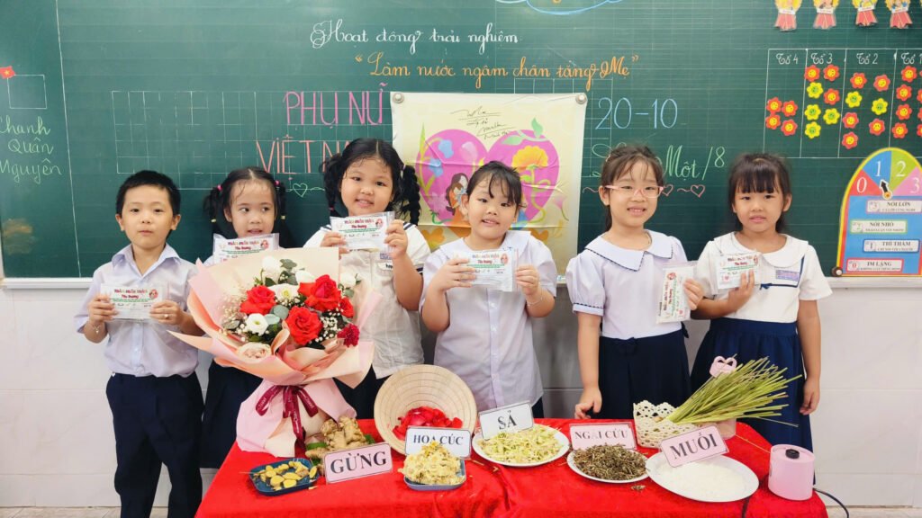Đặc biệt, các con còn tự tay làm nước ngâm chân tặng mẹ, với “nguyên liệu” đặc biệt: 100% tình yêu thương và một chút vitamin biết ơn 💕.