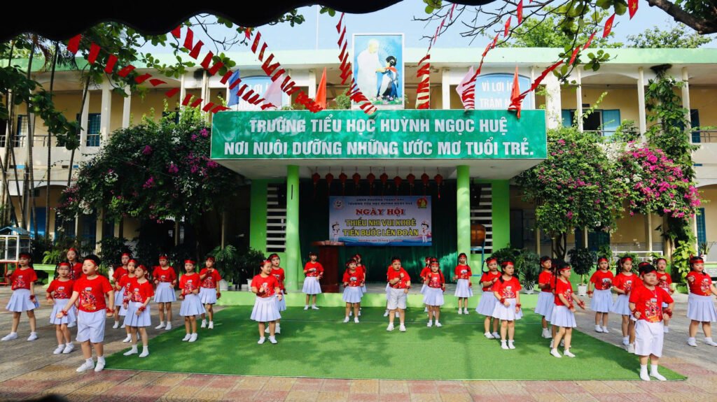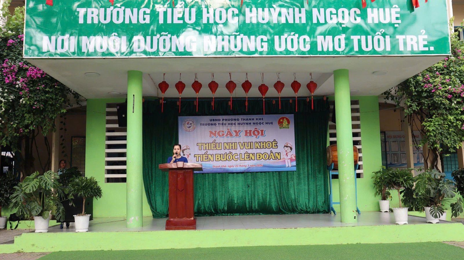 Nhằm tạo đợt sinh hoạt chính trị sâu rộng trong thiếu nhi nhà trường, thi đua lập thành tích chào mừng thành công cuộc bầu cử Đại biểu Quốc hội khóa XVI và đại biểu Hội đồng nhân dân các cấp, nhiệm kỳ 2026 – 2031; tuyên truyền, giáo dục cho thiếu nhi về truyền thống vẻ vang 95 năm xây dựng, trưởng thành và phát triển của Đoàn TNCS Hồ Chí Minh; chào mừng kỷ niệm 85 năm ngày thành lập Đội TNTP Hồ Chí Minh; 51 năm giải phóng TP Đà Nẵng (29/3/1975-29/3/1926); hưởng ứng sự phát động của Hội Đồng Đội; Hôm nay, ngày 23/03/2026, Liên đội trường Tiểu học Huỳnh Ngọc Huệ tổ chức Ngày hội “Thiếu nhi vui khỏe – Tiến bước lên Đoàn”.