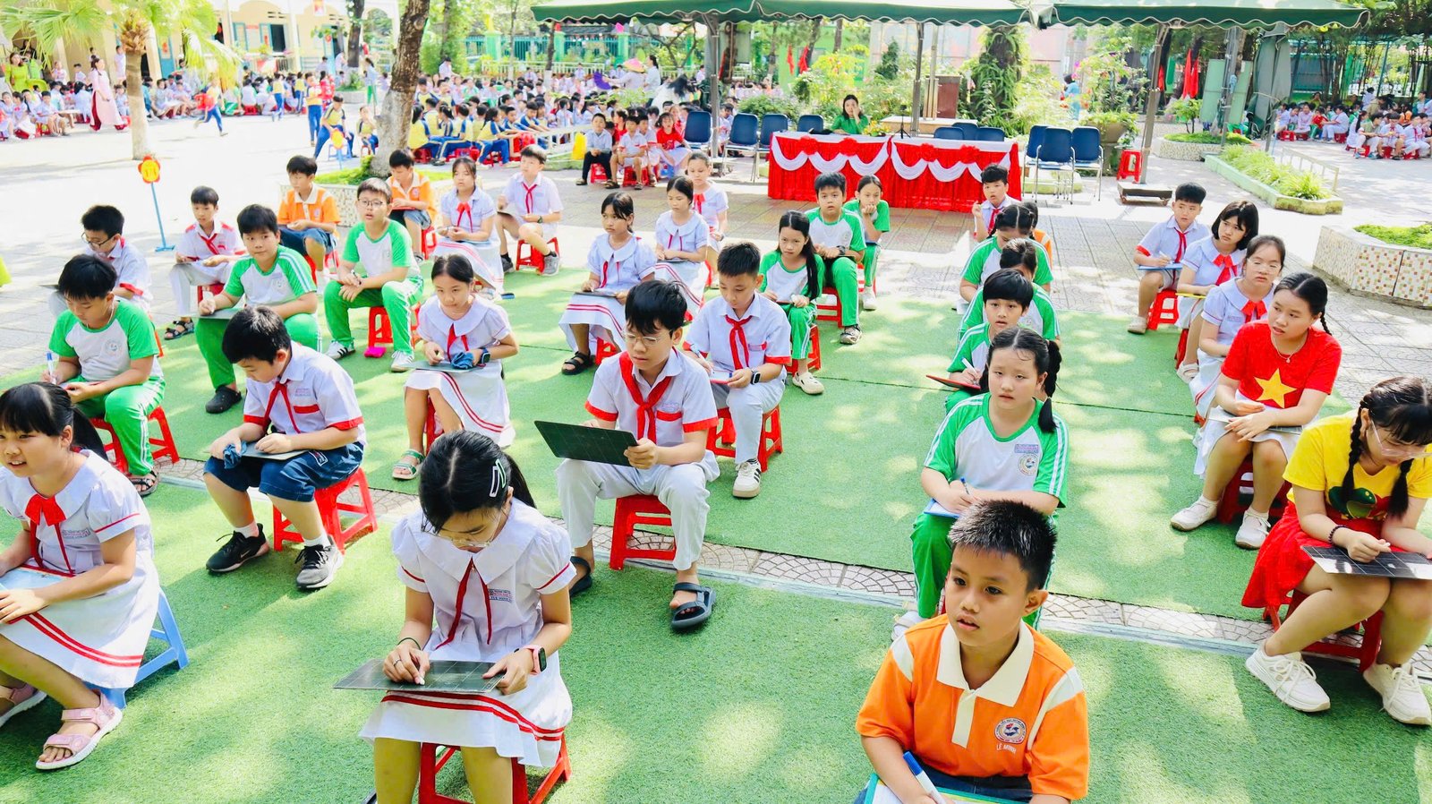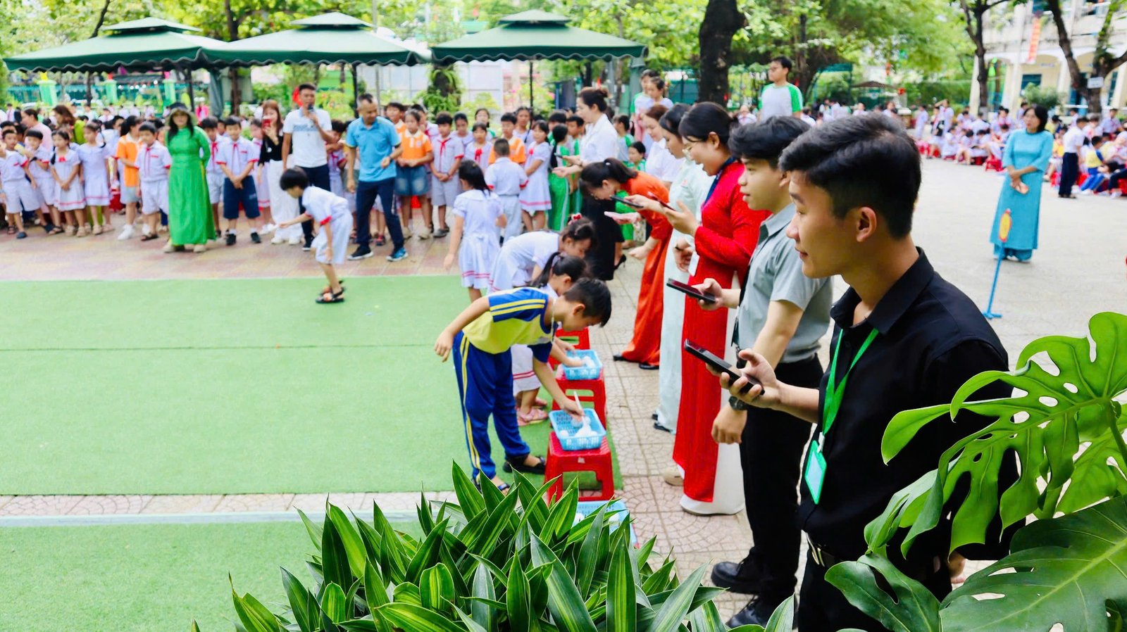 – Cô Bùi Thị Hoài Thanh, Cô Trần Thị Thùy Phương – PHT nhà trường. Quý thầy cô giáo Bí thư Chi đoàn và 1206 em học sinh Liên đội trường Tiểu học Huỳnh Ngọc Huệ.