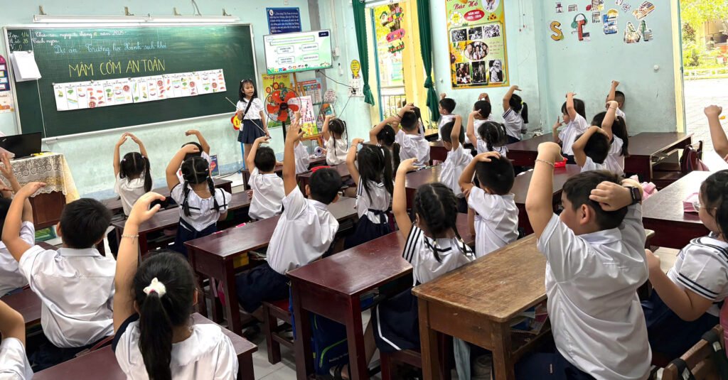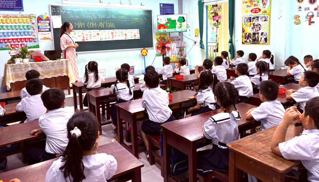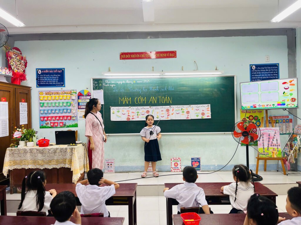 Nằm trong chuỗi các hoạt động của Chương trình “Phát triển Trường học Xanh – Sạch – Khoẻ” cấp Tiểu học do Bộ Giáo dục & Đào tạo phối hợp cùng Unilever triển khai, trong tiết Hoạt động trải nghiệm tại lớp 1/4, cô giáo Lê Thị Thanh Thảo cùng các bạn nhỏ khám phá một chủ đề vô cùng gần gũi và thiết thực – “Mâm cơm an toàn”.
