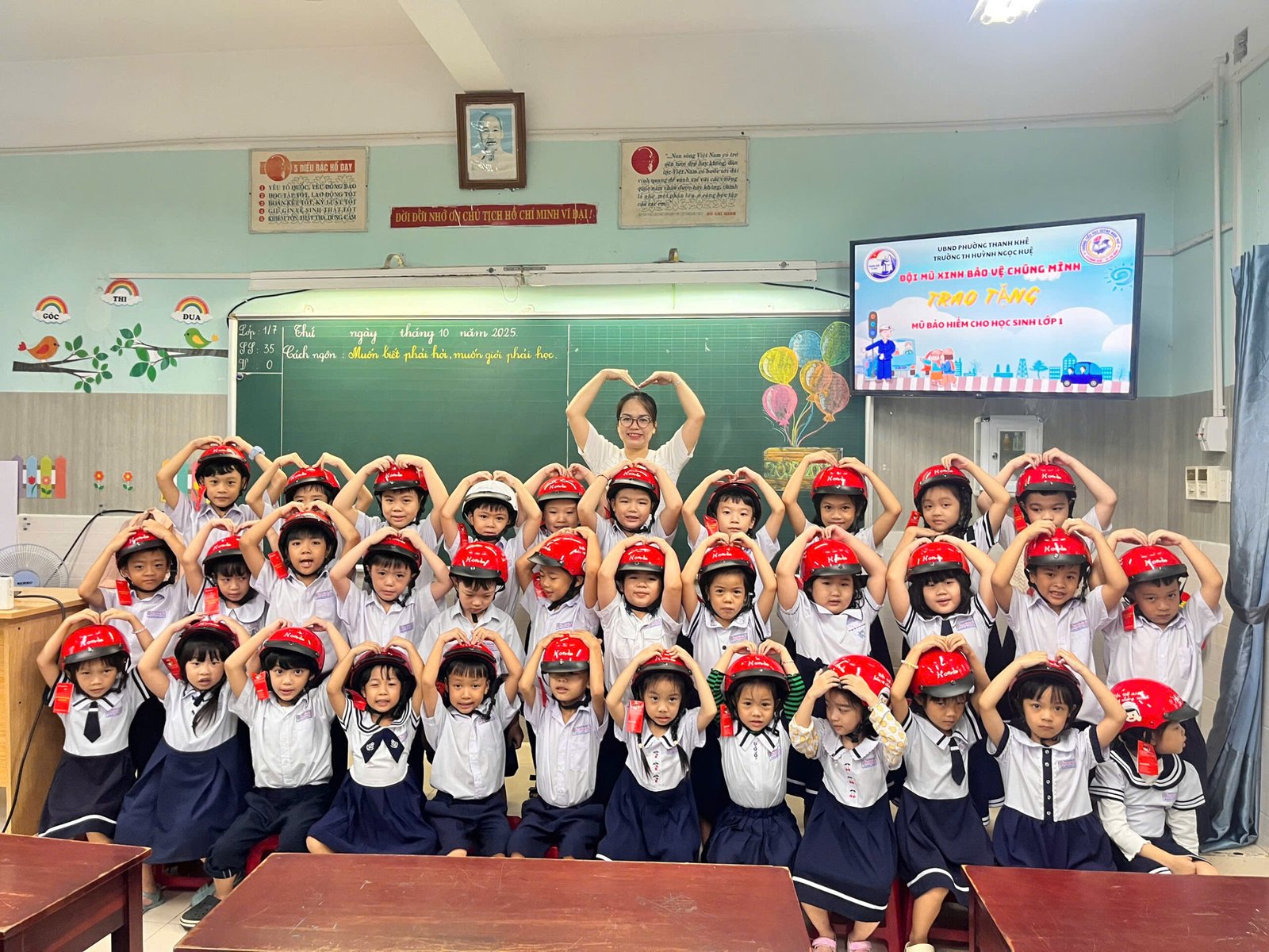 🛵Sáng ngày 28/10/2025, trường Tiểu học Huỳnh Ngọc Huệ thay mặt Công ty Honda Việt Nam tổ chức chương trình “Trao tặng mũ bảo hiểm cho học sinh lớp 1 năm học 2025–2026” với chủ đề “Trao tặng mũ bảo hiểm – Giữ trọn ước mơ” của Ủy ban An toàn giao thông Quốc gia, Bộ GD-ĐT và Công ty HonDa Việt Nam.